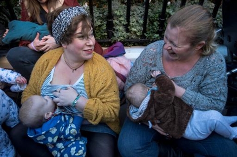| Des femmes allaitent lors d'une manifestation pro-allaitement à Londres. |