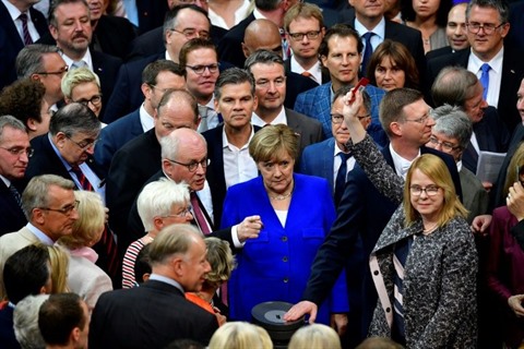 | La chancelière allemande Angela Merkel et les députés s'apprêtent à voter après un débat sur le mariage homosexuel, le 30 juin à Berlin. |