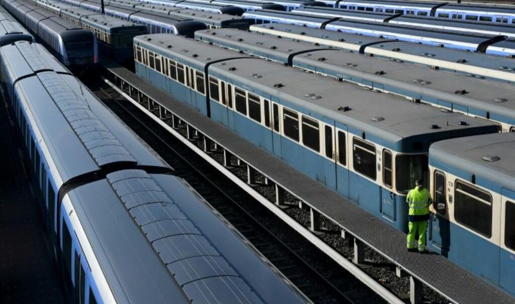 | Des rames de métro dans un dépôt à Munich, le 2 mars. |