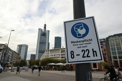 | Rappel de la nécessité de porter le masque dans une rue de Francfort, le 21 octobre. |