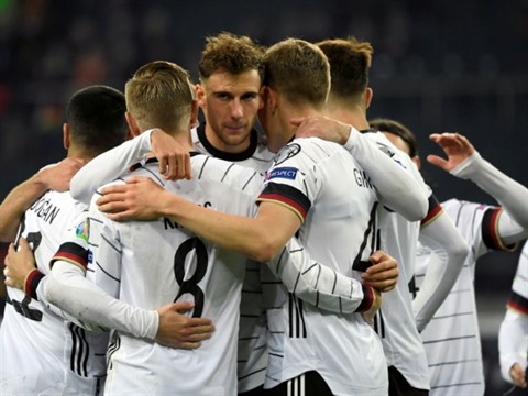 | Les Allemands se congratulent après le but de Leon Goretzka contre le Bélarus, le 16 novembre à Mönchengladbach. |