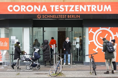 | Dans un centre de test du COVID-19 à Berlin, en Allemagne. |