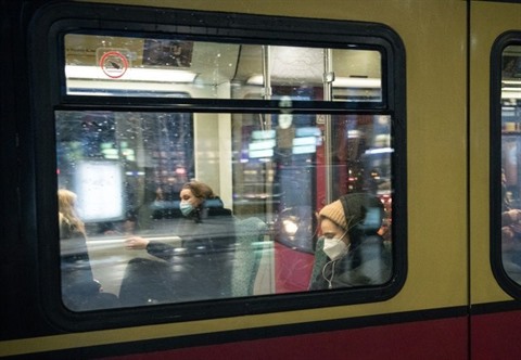 | Des passagers portent des masques de protections dans un train de banlieue, à Berlin (Allemagne) le 18 janvier. |