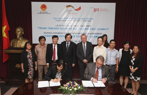 | Cérémonie de signature d'un accord pour la mise en œuvre du projet "Centre de formation professionnelle de haute qualité – LILAMA 2", le 8 octobre à Hanoi. |