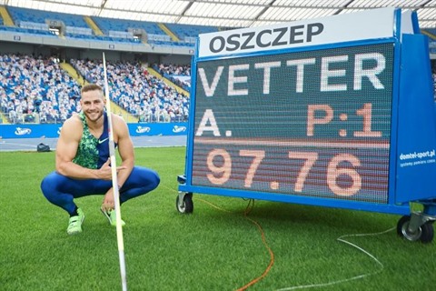 Champion du monde en 2017, médaillé de bronze mondial l'été dernier à Doha (Qatar), Vetter (27 ans) s'est approché à moins d'un mètre du record du monde qui paraissait imbattable de la légende tchèque Jan Zelezny, qui avait lancé à 98,48 m en mai 1996. "Je ne sais pas vraiment quoi dire, au javelot ce sont des petits détails qui permettent de faire de très bons lancers, lorsque tout se met parfaitement en place", a-t-il expliqué. "Avec du vent de face j'aurais pu aller beaucoup plus loin, peut-être proche des 100 m, mais je pense avoir montré que l'on pouvait aussi lancer très loin dans un stade fermé comme celui-là."