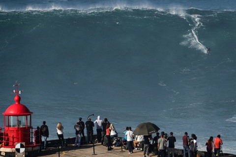 Ce jour d'octobre 2020 où Sebastian Steudtner a obtenu son record, une foule compacte s'était massée au pied du phare de Nazaré et sur les flancs de la falaise qui domine les lieux. En raison des restrictions sanitaires en vigueur à l'époque, les autorités locales avaient même dû limiter l'accès des spectateurs.