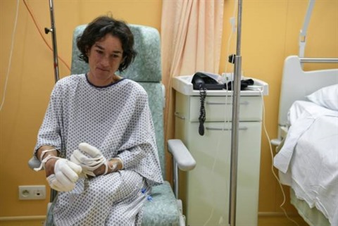 | L'alpiniste Elisabeth Revol lors d'une interview exclusive à l'AFP dans un hôpital à Sallanches, dans les Alpes françaises, le 31 janvier. |