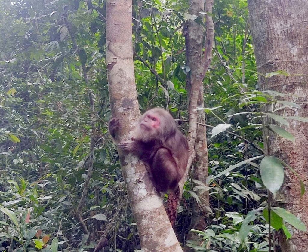 | Le macaque à face rouge qui vient d'être relâché dans la nature à Lâm Dông. |