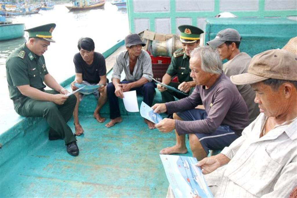 | Garde-frontières sensibilisant des pêcheurs contre la pêche INN. |