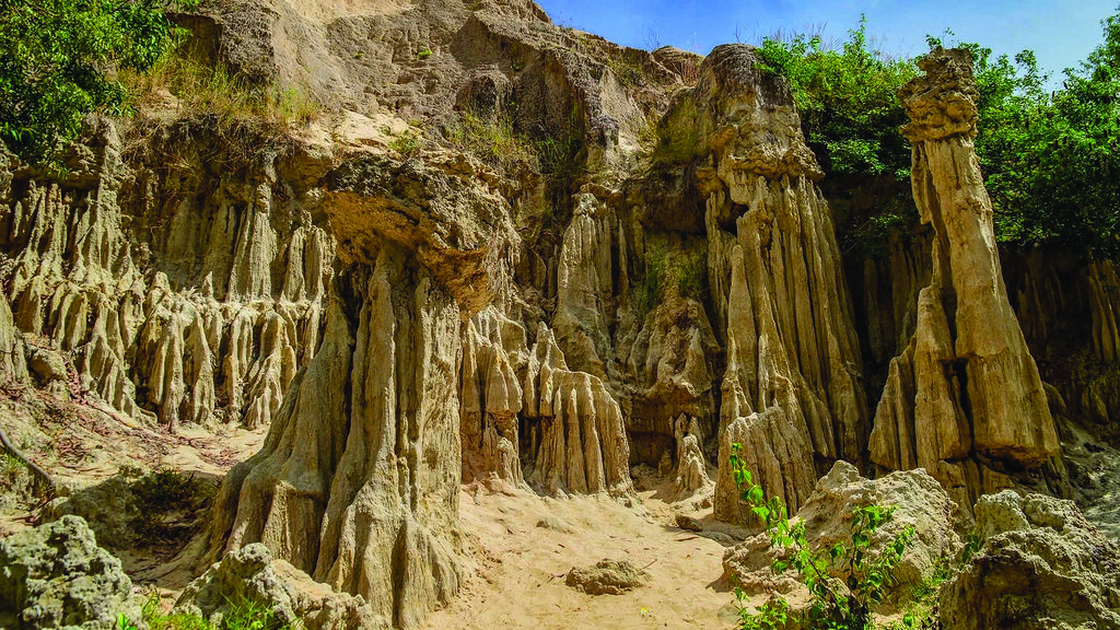 À environ 25 km du quartier de Phan Thiêt, les rochers de Mui Né sont caractérisés par un relief accidenté, dominé par des falaises sombres, noires comme du charbon - vestiges d’un ancien plateau marin.