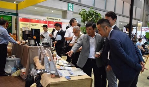 | Le café arabica de Lâm Dông (hauts plateaux du Centre) à l'exposition SCAJ 2016 à Tokyo. |