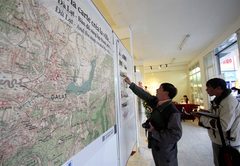 | Exposition "Dà Lat : histoire de la fondation et du développement à travers des cartes", dans la galerie Hoà Binh. |