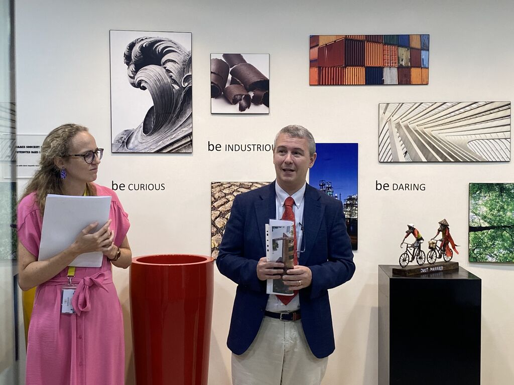 L'ambassade a organisé une brève visite de ses locaux pour les invités de marque, qui ont eu l'occasion d'admirer les œuvres d'art de Daniel L’houte.