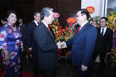 | Le membre du politburo et vice-Premier ministre Vuong Dinh Huê (droite) et l'ambassadeur de Chine au Vietnam, Xiong Bo. |