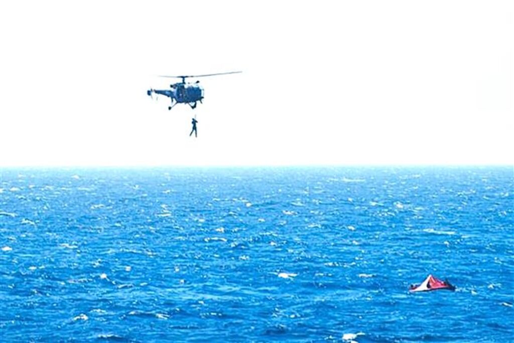 | Un hélicoptère de sauvetage sauve des marins après une attaque contre un cargo au large du Yémen, le 6 mars. |