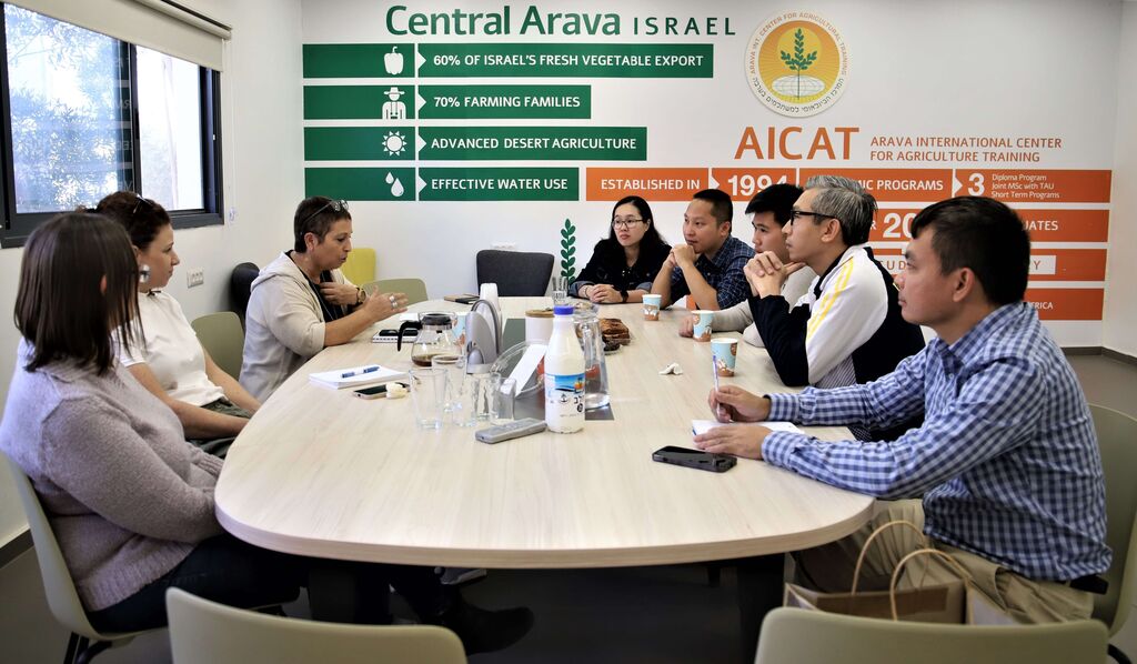 | Une mission de l'ambassade du Vietnam en Israël dirigée par l'ambassadeur Ly Duc Trung (2e à droite) rend visite aux stagiaires vietnamiens au Centre international de formation agricole Arava. |