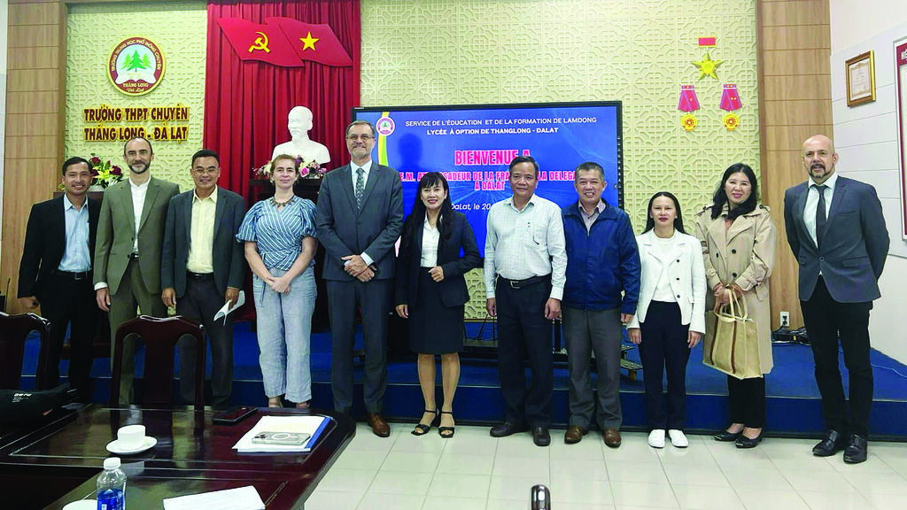 La première journée, le diplomate français s’est entretenu avec des représentants du secteur éducatif de la ville de Dà Lat au Lycée d’excellence Thang Long au sujet de l’enseignement du français, afin de cerner les besoins des établissements et les opportunités d’attribution du LabelFrancÉducation, une marque de qualité pour l’enseig-nement bilingue francophone à l’étranger.