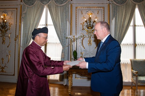 | L'ambassadeur Dinh Toàn Thang présente ses lettres de créance au prince Albert II de Monaco. |