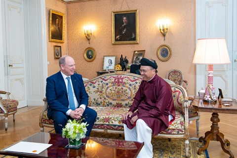 | L'ambassadeur Dinh Toàn Thang (gauche) reçu par le Prince Albert II de Monaco. |