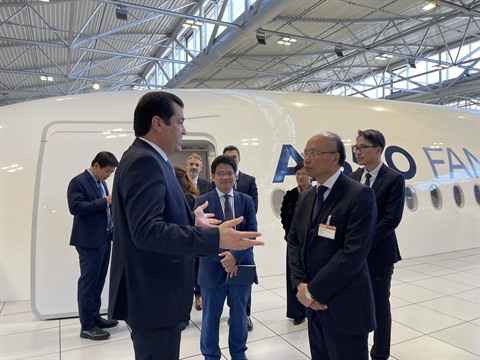 | L'ambassadeur Dinh Toàn Thang visite le showroom d'Airbus. |