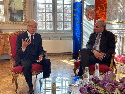| Le maire de la ville de Toulouse, Jean-Luc Moudenc (droite), reçoit l'ambassadeur du Vietnam en France, Dinh Toàn Thang. |