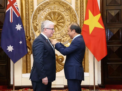 S’adressant à la cérémonie de remise de l’Ordre de l’amitié de l’État vietnamien à l’ambassadeur sortant d’Australie au Vietnam, Craig Chittick, le vice-ministre vietnamien des Affaires étrangères, Nguyên Quôc Dung, s’est félicité des contributions actives et significatives de l’ambassadeur au développement des relations entre le Vietnam et l’Australie d’une manière plus digne de confiance, pratique et efficace, en particulier à l’établissement du partenariat stratégique bilatéral en mars 2018 .