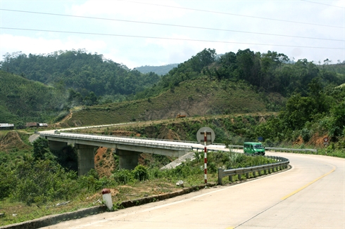 | Un tronçon de la route de Hô Chi Minh traversant la province de Kon Tum. |