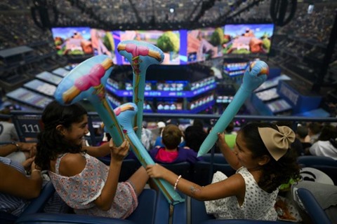 | Deux spectatrices de la finale de la Coupe du monde Fortnite, à New York. |