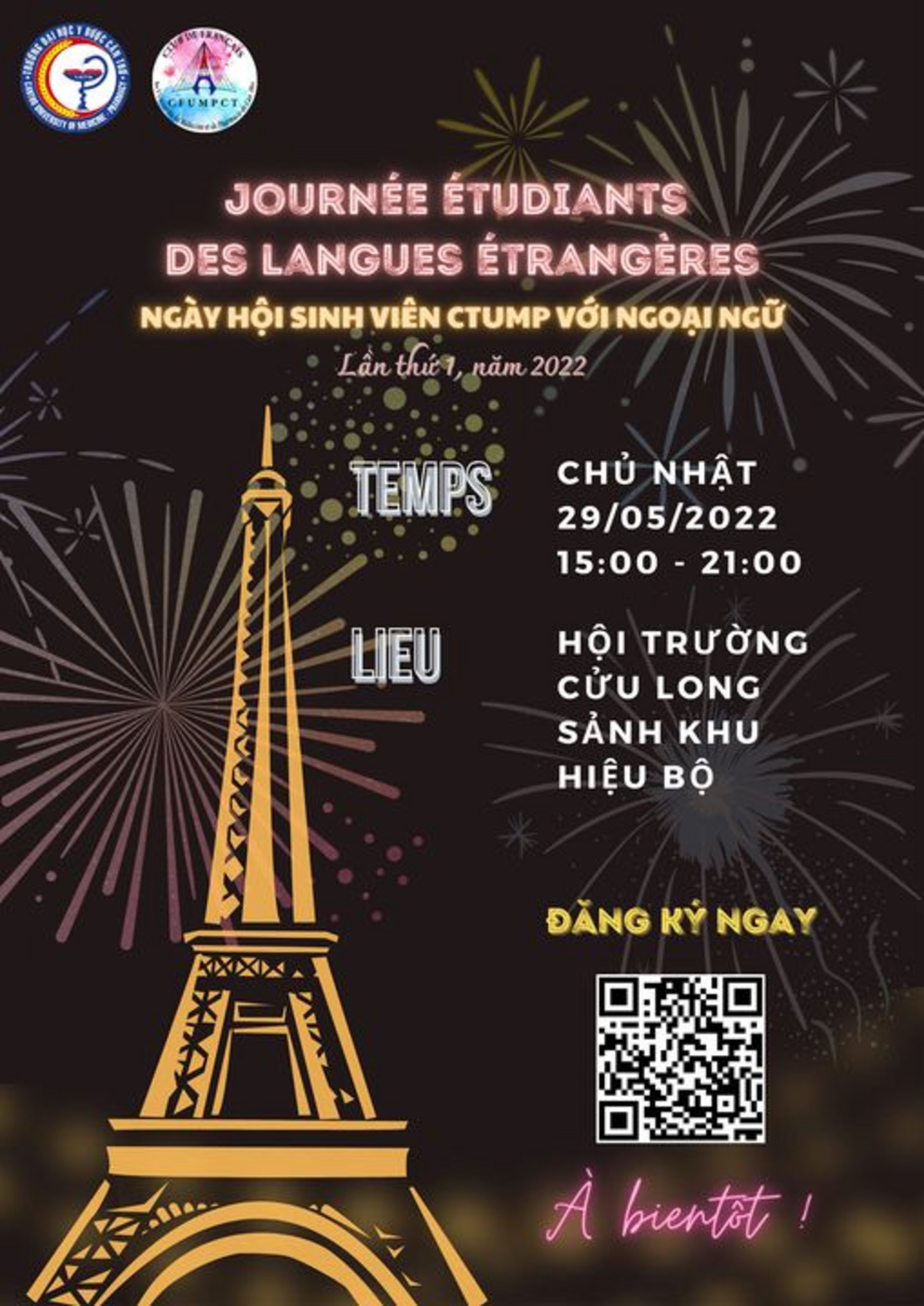 | Poster de la journée étudiante CTUMP avec langues étrangères organisée par le Club français fondé par M. Phu. |
