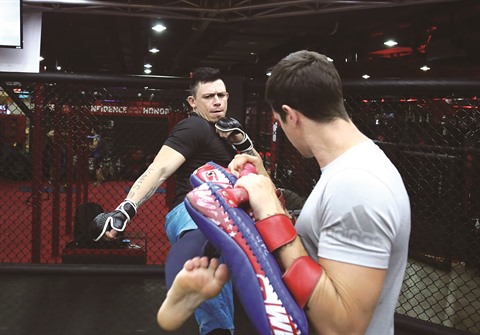 | Arnaud Lepont (gauche) s’entraîne dans un centre de MMA à Hô Chi Minh-Ville. |
