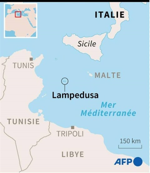 | Localisation de l'île de Lampedusa. |