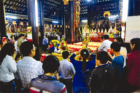 | Les Vietnamiens ont l’habitude d’aller aux pagodes au Jour de l’An. Ils prient pour que de bonnes choses arrivent à leur famille. |