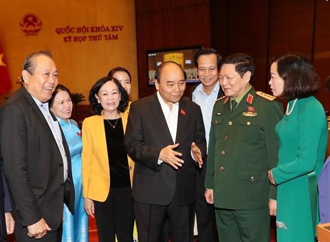| Le Premier ministre Nguyên Xuân Phuc (centre) et des députés lors de la 8e session de l'Assemblée nationale de la XIVe législature. |