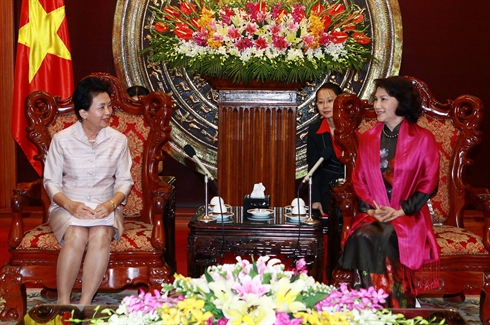 | La vice-présidente de l'AN, Nguyên Thi Kim Ngân (droite) reçoit le 20 juin le secrétaire général du Sénat de la Thaïlande, Norarut Pimsen. |