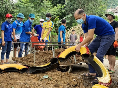 | Les jeunes de la province de Lai Châu participent à une activité volontaire. |