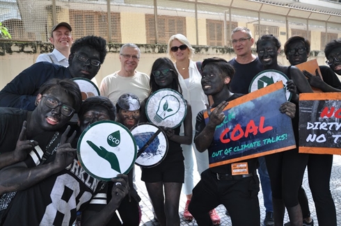 La journée a été marquée par le défilé d’un groupe de personnes peintes totalement en noir en référence aux charbons mobiles. Recouvertes de masques à gaz, elles ont arboré des banderoles et brandi des affiches avec le message “Dire non au charbon”.