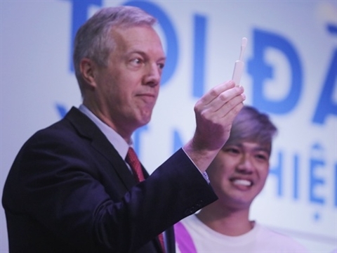 | L’ambassadeur américain Ted Osius à la cérémonie de lancement des autotests de dépistage du VIH/Sida au Vietnam. |