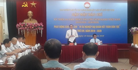 | Cérémonie de lancement du concours journalistique "Pour le bloc d’union nationale", le 19 juin à Hanoï. |