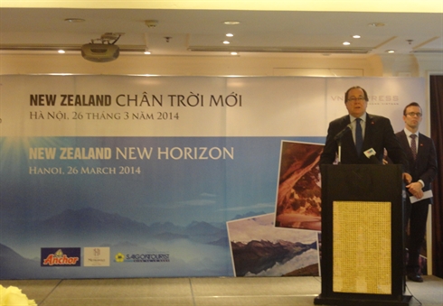 | Le ministre néo-zélandais des Affaires étrangères Murray McCully lors de la cérémonie de lancement du concours du tourisme «Nouvelle-Zélande, nouvel horizon», le 26 mars à Hanoi. |