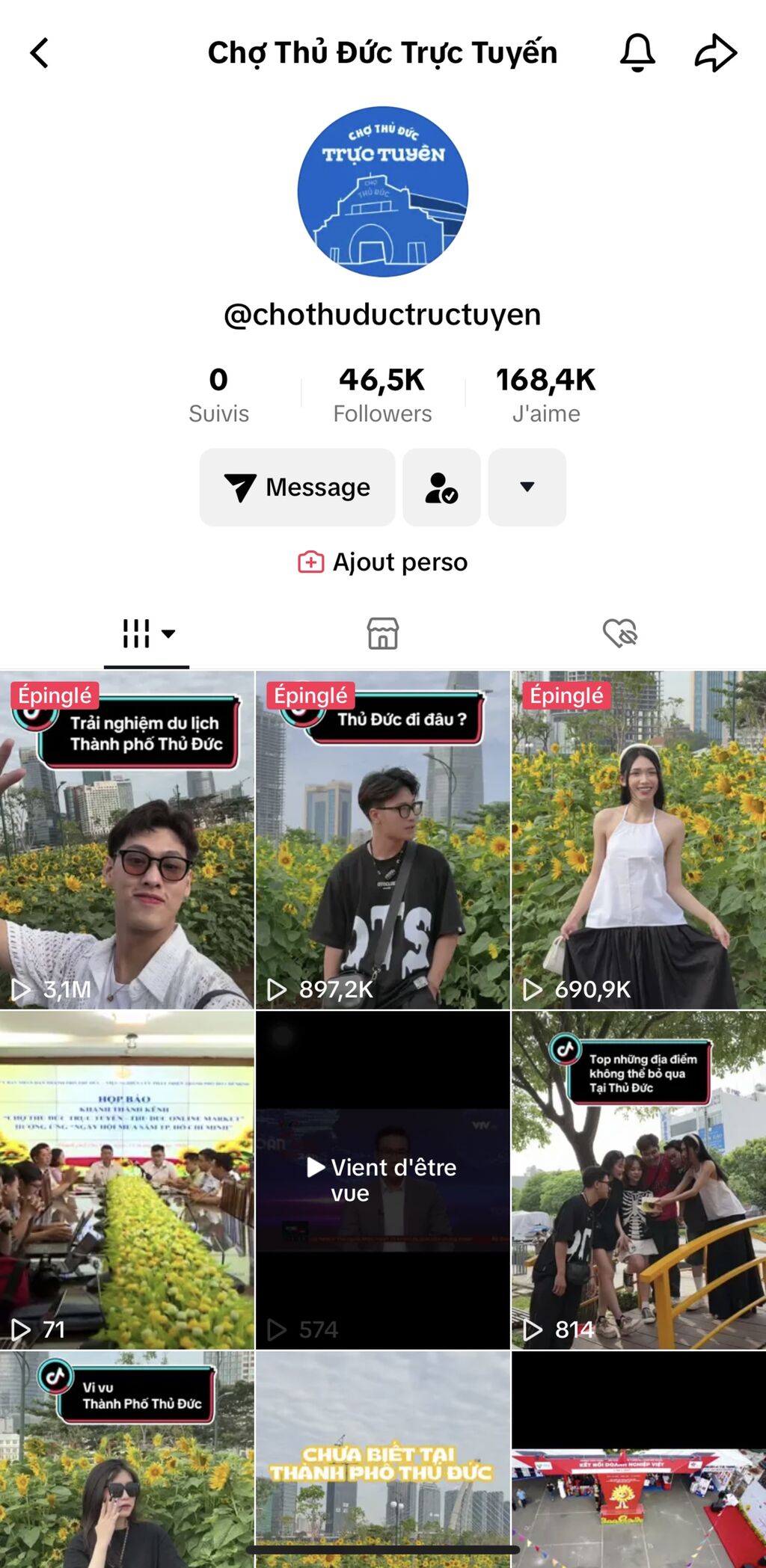 | La plateforme électronique TikTok du marché de Thu Duc compte déjà plus de 46.000 abonnés. |