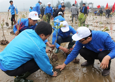 | Des jeunes particippent à la plantation des arbres. |