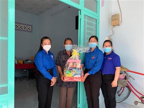 | Les jeunes saigonnaïs offrent des cadeaux à une famille méritante. |