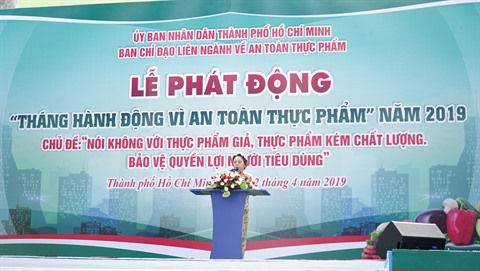 Lors de la cérémonie de lancement du Mois pour la sécurité sanitaire des aliments pour 2019, Pham Khanh Phong Lan, chef du Comité de gestion de la sécurité sanitaire des aliments de Hô Chi Minh-Ville (CGSA), a déclaré que ce mois d'action se déroulerait du 15 avril au 15 mai.