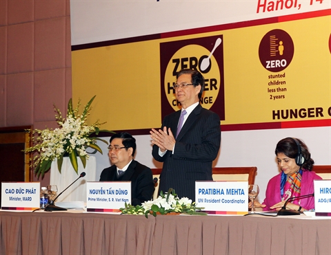 Dans son intervention, le Premier ministre Nguyên Tân Dung a souligné que le gouvernement vietnamien appréciait hautement l'initiative "Défi Faim Zéro" du Secrétaire général de l'ONU afin de garantir une meilleure vie pour tout le monde. Il a rappelé que le Vietnam couvrait une superficie de 330.000 km², et informé que 103.000 étaient utilisables pour l'agriculture. En 2013, il abritait une population de 90 millions d'habitants dont 70% vivant à la campagne.