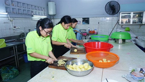 | Les bénévoles de "Foodbank Vietnam" préparent des repas pour les enfants de Thi Nghè, à Hô Chi Minh-Ville. |