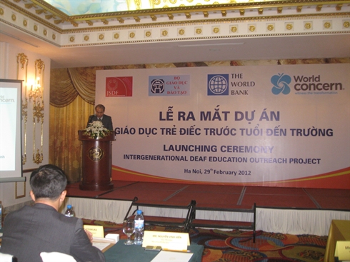 | La cérémonie de lancement du projet "Éducation des enfants sourds avant scolarisation", organisée le 29 février à Hanoi. Photo : Phuong Nga/CVN |