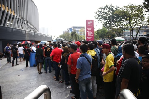 | Les fans font la queue devant la billetterie pour le match aller de la finale de l'AFF Suzuki CUp 2018. |