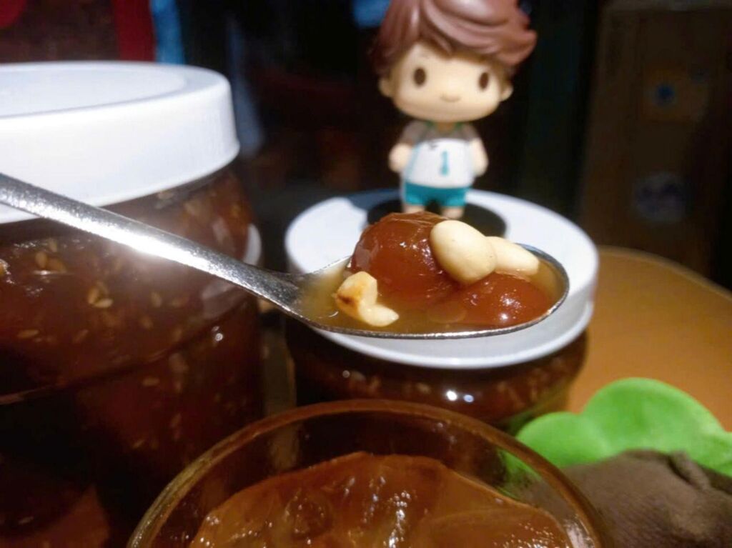 | Des graines de tamarin doucement cuites, servies avec des cacahuètes grillées parfumées, créent un goût délicieux et irrésistible. |