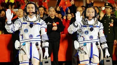 | Les deux astronautes, Jing Haipeng (droite) et Chen Dong, passeront 30 jours à bord du deuxième laboratoire spatial chinois, Tiangong-2. |