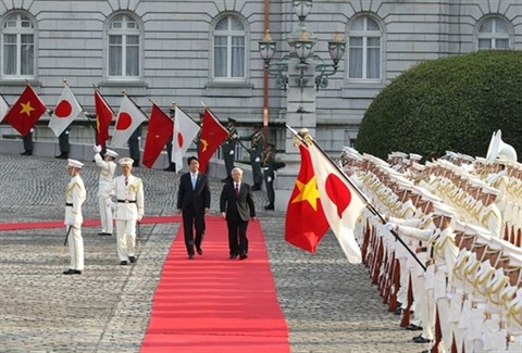 | Cérémonie d'accueil officielle du secrétaire général du Parti, Nguyên Phu Trong, à Tokyo en septembre 2015. |